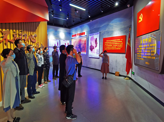 观展结束,面对鲜红的党旗,组织员黄静带领全体党员重温入党誓词。庄严的宣誓提醒着我们要牢记共产党员的初心与使命,进一步增强“四个意识”,坚定“四个自信”,坚决做到“两个维护”。