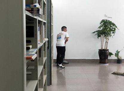 图书馆是校园文化的集中体现,保持图书馆的清洁,不仅能给同学们一个舒适的学习环境,还能营造温馨的学习氛围。活动中,大家听从安排,积极参与,分工合作,一组拖地、一组擦书架、一组擦楼梯和窗户,发扬不怕脏、不怕累的精神,欢快的干了两个多小时。看着窗明几净的图书馆;看着自己辛勤劳动带给同学们的优良环境,大家都会心地笑了——值得!