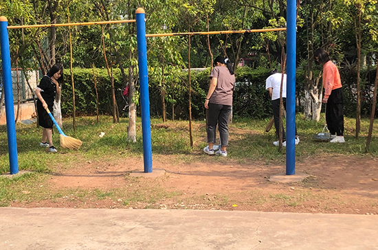 17时许,义务劳动在欢歌笑语中结束,回望校园,每一名党员的脸上都洋溢着灿烂的笑容。通过大家的辛勤劳动和共同努力,花果山校区又平添几分色彩。