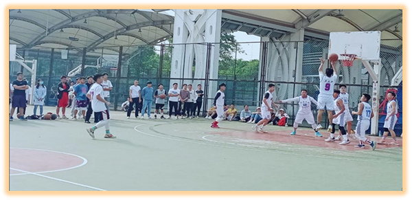 五点准时开始了,双方相互敬礼学习,刚开始只是热热身,随着比赛的进行,赛事逐渐激烈起来,奔跑,跳跃,开始的时候双方不分上下,碰撞,摩擦。当然,球场上免不了受伤,第一节进行快一半的时候,对方球员在奔跑中被撞倒在地,顿时所有人目光聚集在他身上,但是他仅仅倒地抱头了一会儿,起来说了句没事又继续进行了比赛,热爱,大概如此吧。