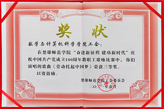 通过全体教职工的共同努力,最终获得了第四名(三等奖)的好成绩,这是对数学与计算机科学学院工会工作、主题活动以及现场艺术水准的肯定和鼓励。