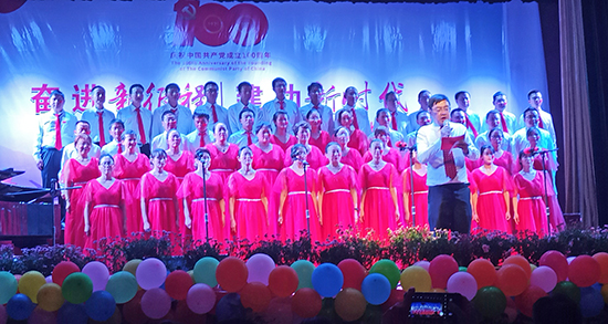 我院工会参赛曲目是《劳动托起中国梦》,在学院领导的大力支持和刘潼老师的精心指导下,比赛时老师们精神饱满、斗志昂扬,用歌声诉说着对祖国的深深热爱,不仅准确地处理了歌曲的音高与节奏,更让饱满的感情迸发而出,震撼全场观众,获得热烈掌声。