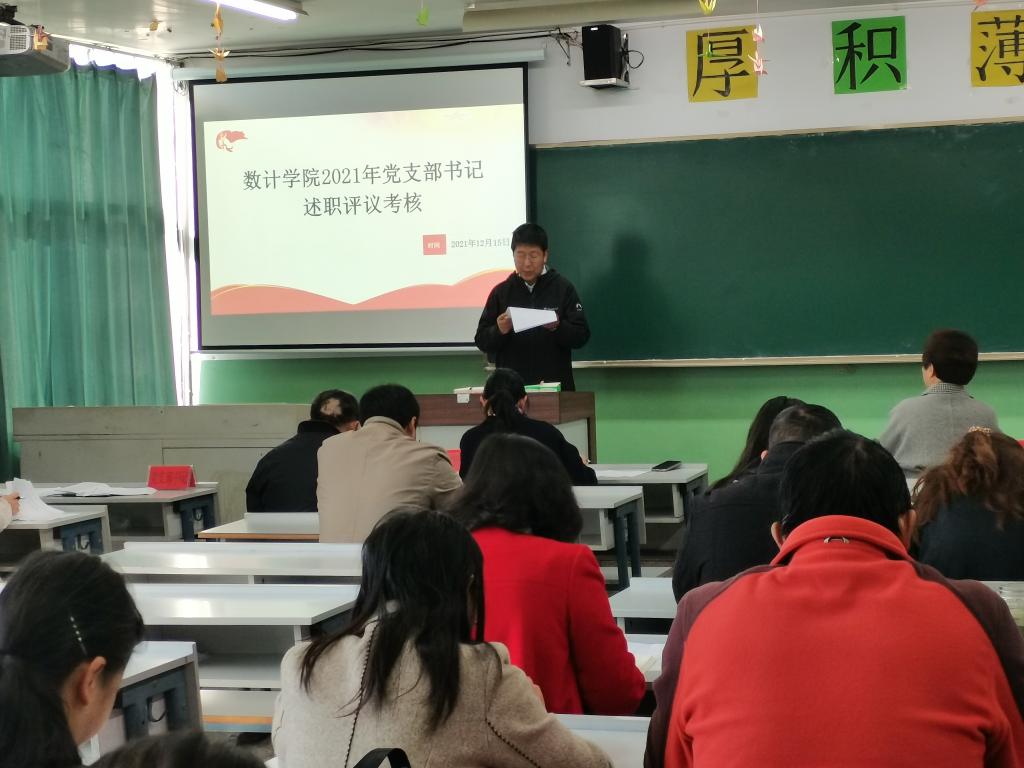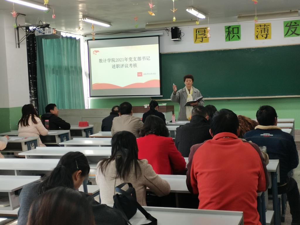 2021年12月15日开展了数计学院2021年党支部书记抓党建工作述职评议考核工作,会议由党委书记周云燕主持,并对考核工作做要求。考核工作分为三个阶段,第一阶段为实地考察、第二阶段为平时成绩评定,第三阶段为现场述职评议。