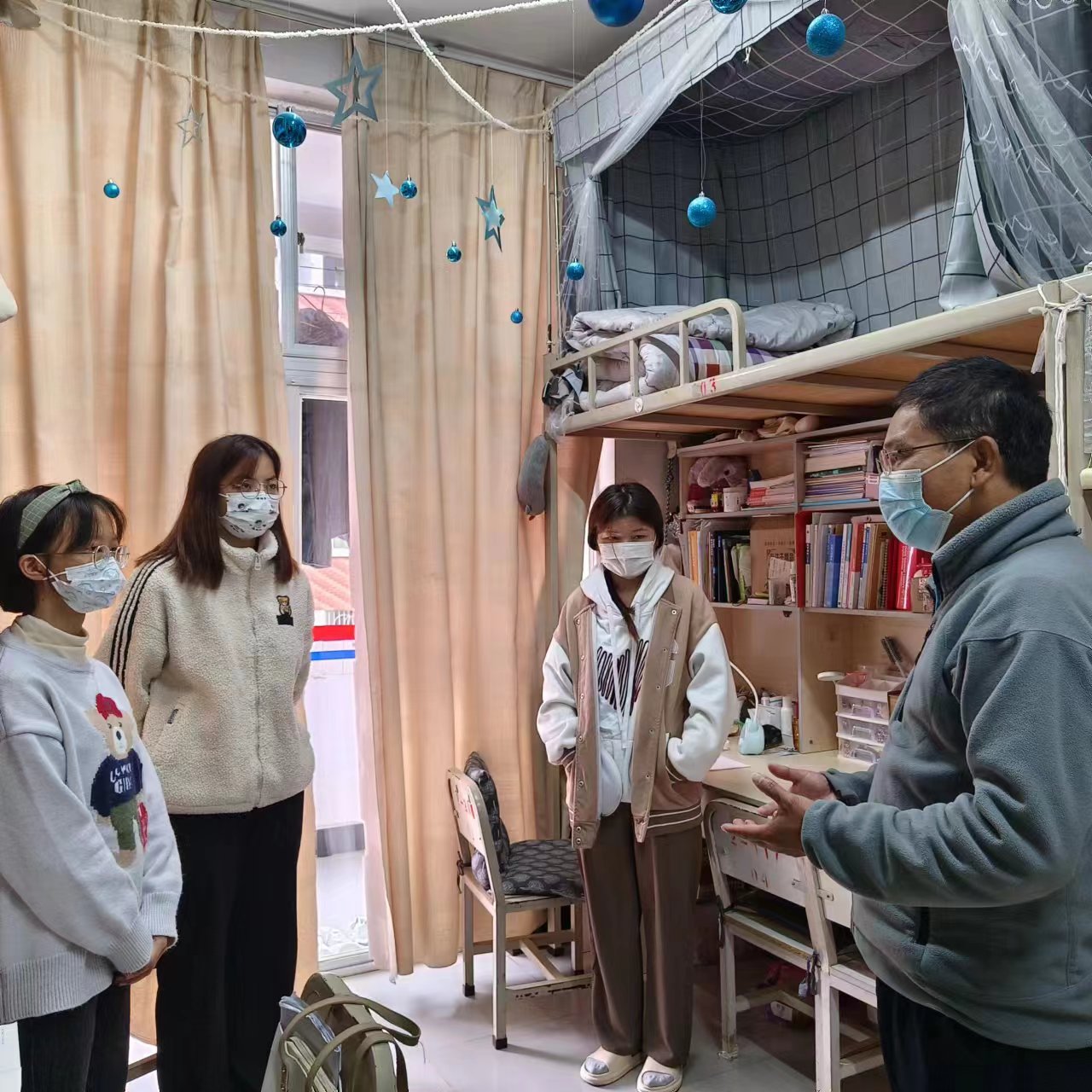 在落实疫情防控工作过程中,全院师生积极配合、众志成城、共度时艰。学院坚决做到“四个加强”教育部疫情防控要求,即加强校门管理、加强师生健康监测、加强重点场所防控、加强教育教学工作统筹。同时,学院领导班子、辅导员、班主任时刻关注学生动态,到宿舍走访,深入学生,关注学生身体健康状况,了解学生学习情况,对学生进行心理疏导,确保全体学生身心健康,学习不受影响。