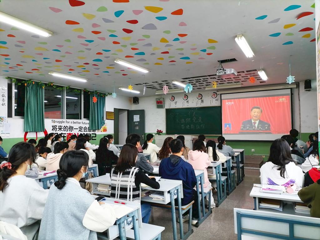 会上,习近平总书记指出,从现在起,中国共产党的中心任务就是团结带领全国各族人民全面建成社会主义现代化强国、实现第二个百年奋斗目标,以中国式现代化全面推进中华民族伟大复兴。全体师生聚精会神地聆听,似乎都“身临其境”般地感受到了习近平总书记的领袖风范,一个个故事、一段段回忆、一幕幕情景,无不闪耀着智慧的火花,传递着党的温暖,彰显着党的不朽功勋。