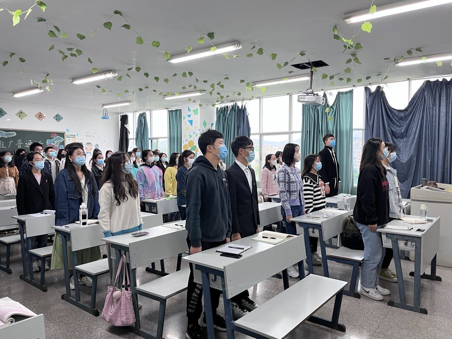 大会开幕,教室里、走廊间回荡着学院全体师生高唱国歌的声音,每一句歌词都是师生们的精神写照,每一段歌声都唱出了新时代中国青年的勇敢与担当,更加坚定了全体师生凝心聚力跟党走、砥砺奋进续华章的决心。