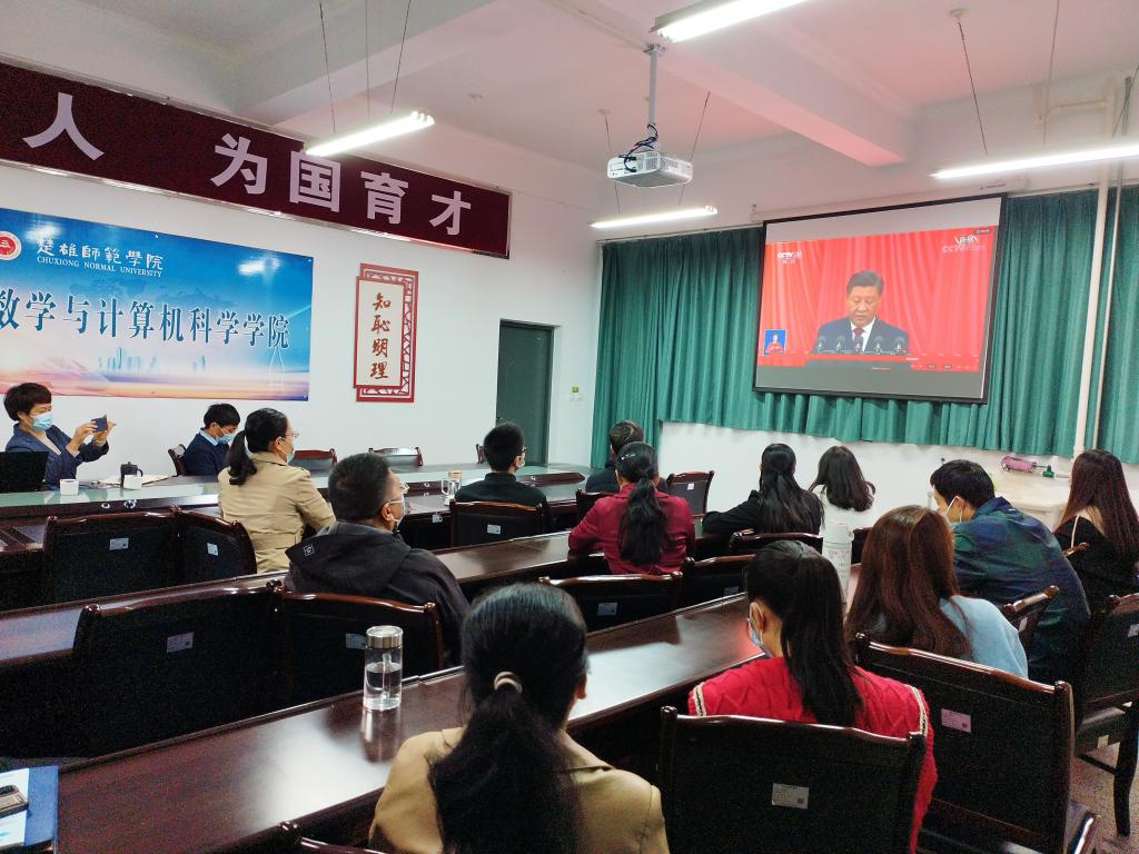 10月16日上午10点,举世瞩目的中国共产党第二十次全国代表大会在北京人民大会堂隆重开幕,数计学院组织全体师生通过集中学习、网络分散学习等方式收看党的二十大开幕盛况,认真聆听习近平总书记代表十九届中央委员会向大会所作的二十大报告。学院党委班子、纪委班子成员、各党支部书记在笃学楼328会议室进行集中收看,全体学生在教室、宿舍等地进行集中收看,其余教师通过网络分散收看。