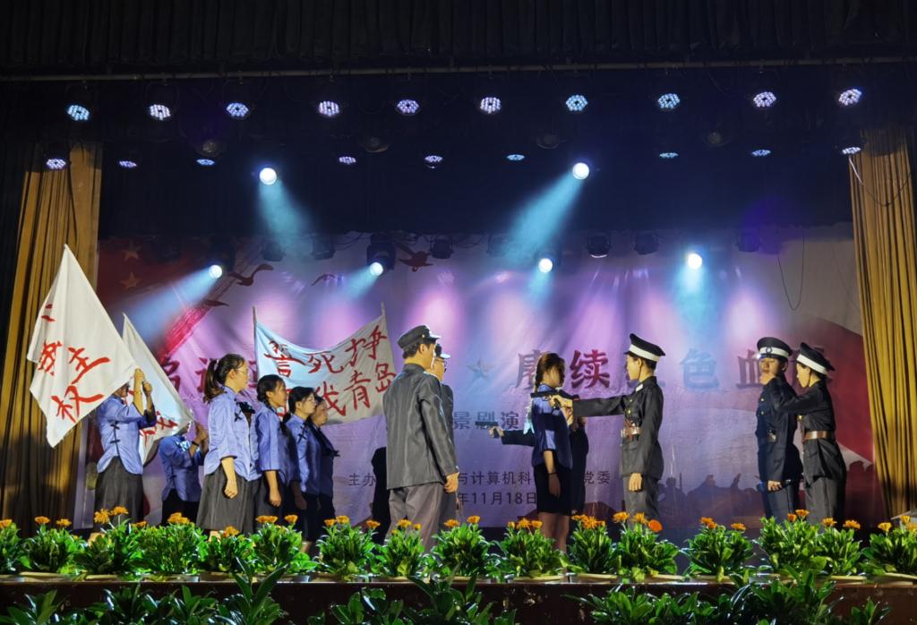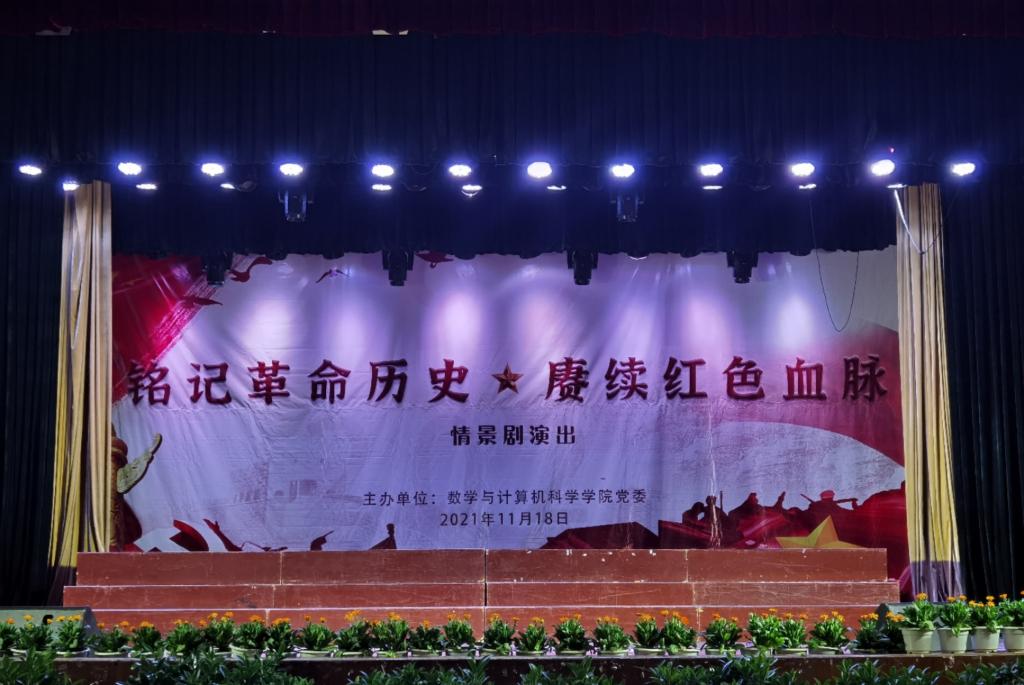 2021年11月18日,由数学与计算机科学学院党委主办的“铭记革命历史,赓续红色血脉”党史学习教育之情景剧演出在雁塔校区下礼堂举行,楚雄师范学院党委委员、副校长李勇、数计学院党委书记周云燕、数计学院副院长田林、全体党支部书记以及教职工、学生党员、发展对象、入党积极分子等600余人现场观看了此次演出,庆贺建党百年,一起重温历史,踏寻初心之路。