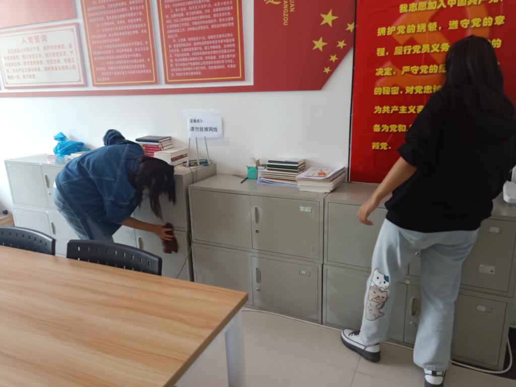为积极倡导爱岗敬业、乐于奉献的氛围,给全体师生营造一个整洁、舒适的学习环境,2021年9月29日下午,数计学院学生第二党支部组织全体党员、预备党员、入党积极分子在明德楼党员活动室和公共区域开展“劳动守初心·奉献践使命”主题党日活动。
