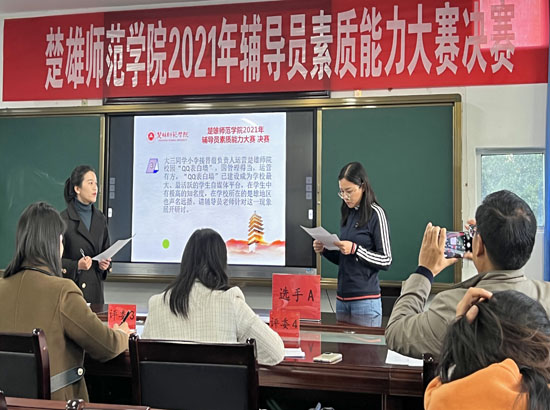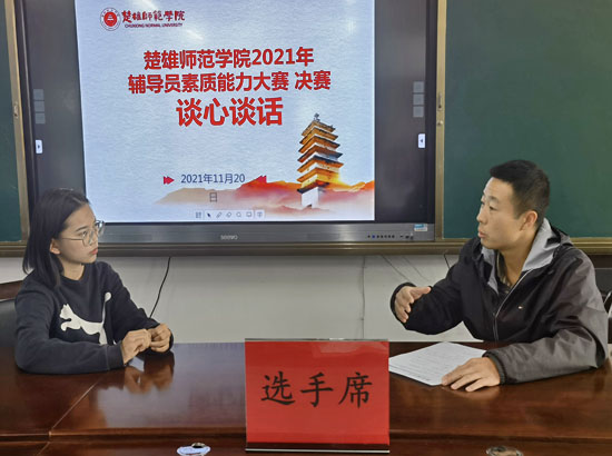 为不断加强学生工作队伍的建设,全面提高专职辅导员的职业能力和素养,突出以赛带练、以赛代训,强化以赛促学、以赛促建的目的,选拔优秀辅导员参加云南省高校辅导员年度素质能力大赛,在各学院组织开展初赛的基础上,学校2021年辅导员职业能力大赛决赛于2021年11月20日在笃学楼122会议室举行,各学院专职辅导员代表参加比赛。