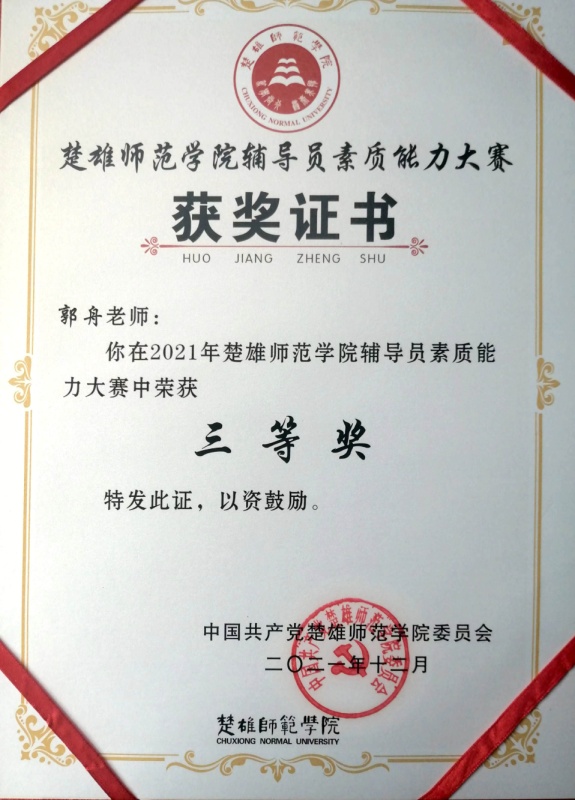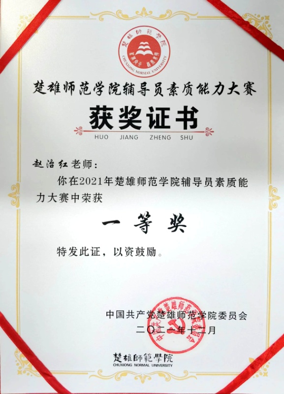 经过激烈角逐,赵治红老师、郭舟老师分别获得本次辅导员职业能力大赛一等奖和三等奖。