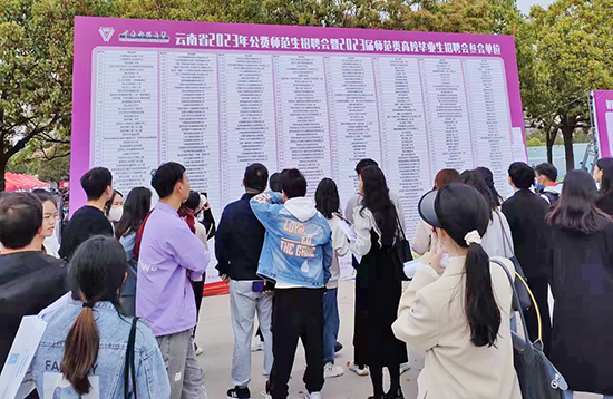 为了加强数计学院毕业生就业服务质量,畅通人力资源供需对接通道,对接企业用人需求,为学生提供就业信息,拓宽毕业生就业渠道和岗位,2023年3月16日,数计学院党委杨段生副书记带领负责就业工作的老师,到云南师范大学呈贡校区参加了云南省2023年公费师范生招聘会暨2023届师范类高校毕业生招聘会,到现场深入了解招聘企业需求,为学院毕业生提供现场答疑服务。之后,又到昆明新长江职业培训学校、上海敬慧克文化科技有限公司云南分公司开展访企拓岗促就业行动。我院100多名毕业生参加了云师大现场招聘会,投出简历230余份,8名学生收到面试通知,6名学生现场签约,与一家单位达成合作意愿,预约到校开展专场招聘会。