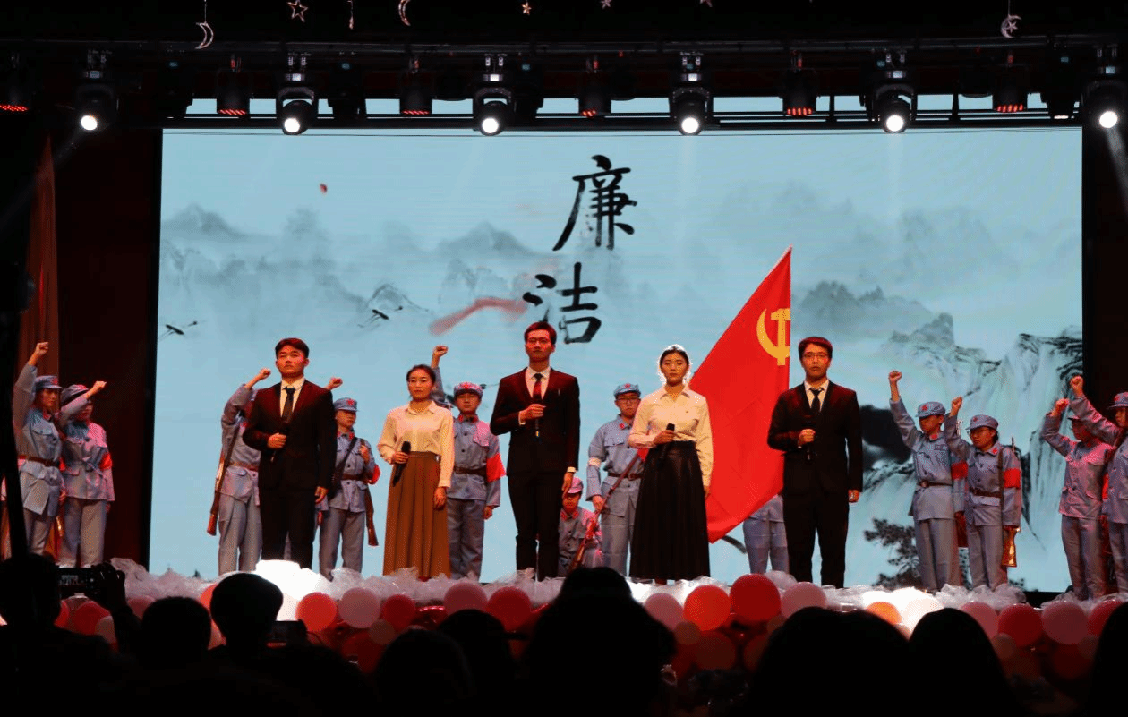 晚会节目精彩纷呈,舞蹈《家有儿女》、《yes or yes》以青春活力演绎华丽篇章、《逾三朝》旋转跳跃间彰显出时代魅力;小品《广告双子星》用快乐的气氛感染了在场的每一个人,在欢声笑语中展现了学子们对现实的思考和对团结协作精神的追求;红色情景剧《丰碑》重回革命年代,再现廉洁的高尚品质和坚守的力量;歌曲《凄美地》、《迷途羔羊》和《违背的青春》唱出了内心坚定的信仰,照亮前方漆黑的路。尽情歌唱,纵情舞蹈,同学们用舞蹈、歌唱、小品、情景剧等表演方式掀开了新的青春画卷。