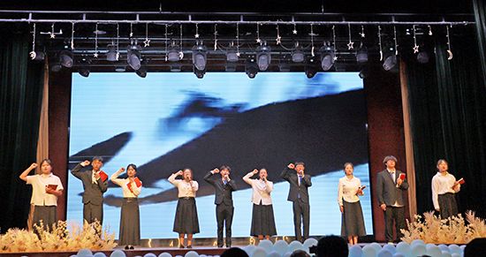 在“携手前行:共建清廉校园”篇章,情景剧《清廉之光 照亮校园》,通过情景再现的方式,警示师生要时刻保持警醒,坚守清廉底线,不让贪腐的阴影侵蚀校园的净土。廉洁寄语《共筑未来》、合唱《有我》相继登场,表达了师生携手共建清廉校园的信心和决心,展现了青年学子在清廉文化建设中的责任与担当。