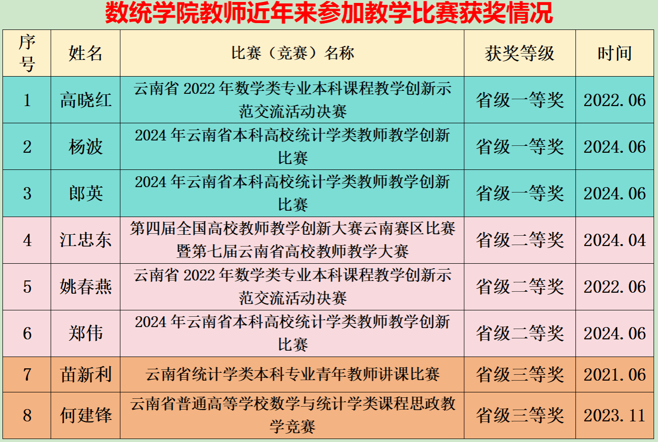 数统学院教师近年来教学比赛获奖情况