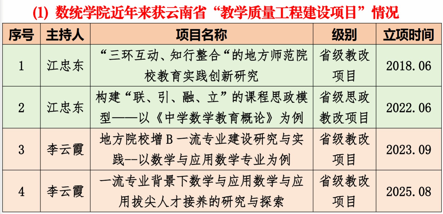 数学与统计学院教师获云南省“教学工程”建设一览表