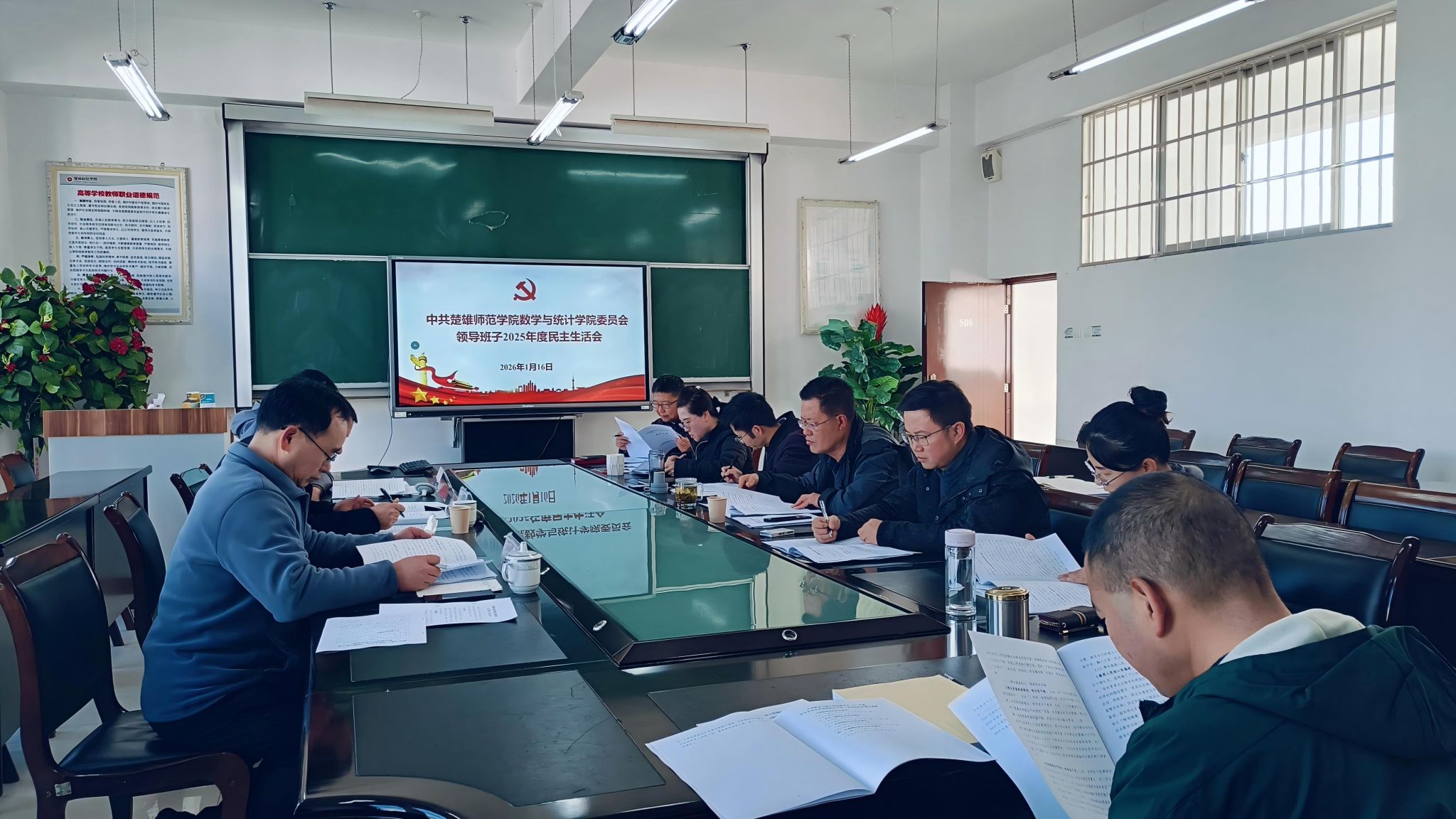 2026年1月16日,数学与统计学院党委班子召开2025年度民主生活会。学校第三督导组组长施红星同志及成员马文军同志、周开进同志到会指导。学院党委班子成员参加会议,会议由党委书记梁林同志主持。
