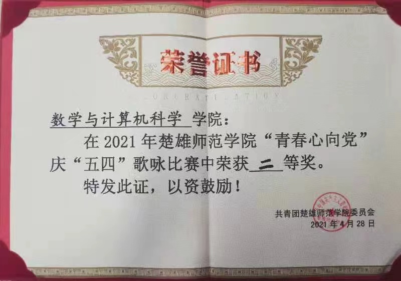 为庆祝中国共产党成立100周年,追寻党的奋斗历程,铭记党的丰功伟绩,传承和弘扬党的光荣传统和优良作风,激发青年大学生的爱党爱国热情,由楚雄师范学院团委举办的“‘青春心向党’庆‘五四’歌咏比赛”决赛于4月28日下午在学校上礼堂正式拉开帷幕。