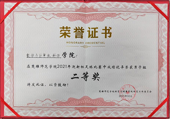 雄壮嘹亮的号角吹响,英姿飒爽的健儿们活跃在赛场中央。为了喜迎2021级新生,丰富学校校园文化生活,增强班级凝聚力,彰显积极进取、顽强拼搏的体育精神,楚雄师范学院于2021年10月至12月举办了迎新杯比赛。在此次比赛中数计学院再创佳绩,男子、女子篮球分获第一、四名,男子、女子排球分获第二、三名,男子足球荣获第二名。