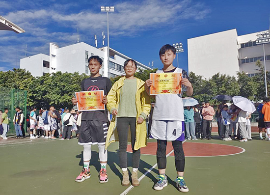 伴随着赛程的结束,15:30“冬韵杯”闭幕式也紧跟而来,《运动员进行曲》奏响,院旗飘扬,运动健儿们入场,主持人许方芳宣读了优秀裁判员、优秀球员、道德风尚奖获奖名单,数计学院团委书记吴建丽为获奖班级颁奖,数计学院团委学生会主席李茧、副主席李小英和冯小继为优秀裁判员、优秀球员、道德风尚奖进行了颁奖,最后所有获奖人员进行拍照留念,数计学院“冬韵杯”篮球赛圆满落幕!