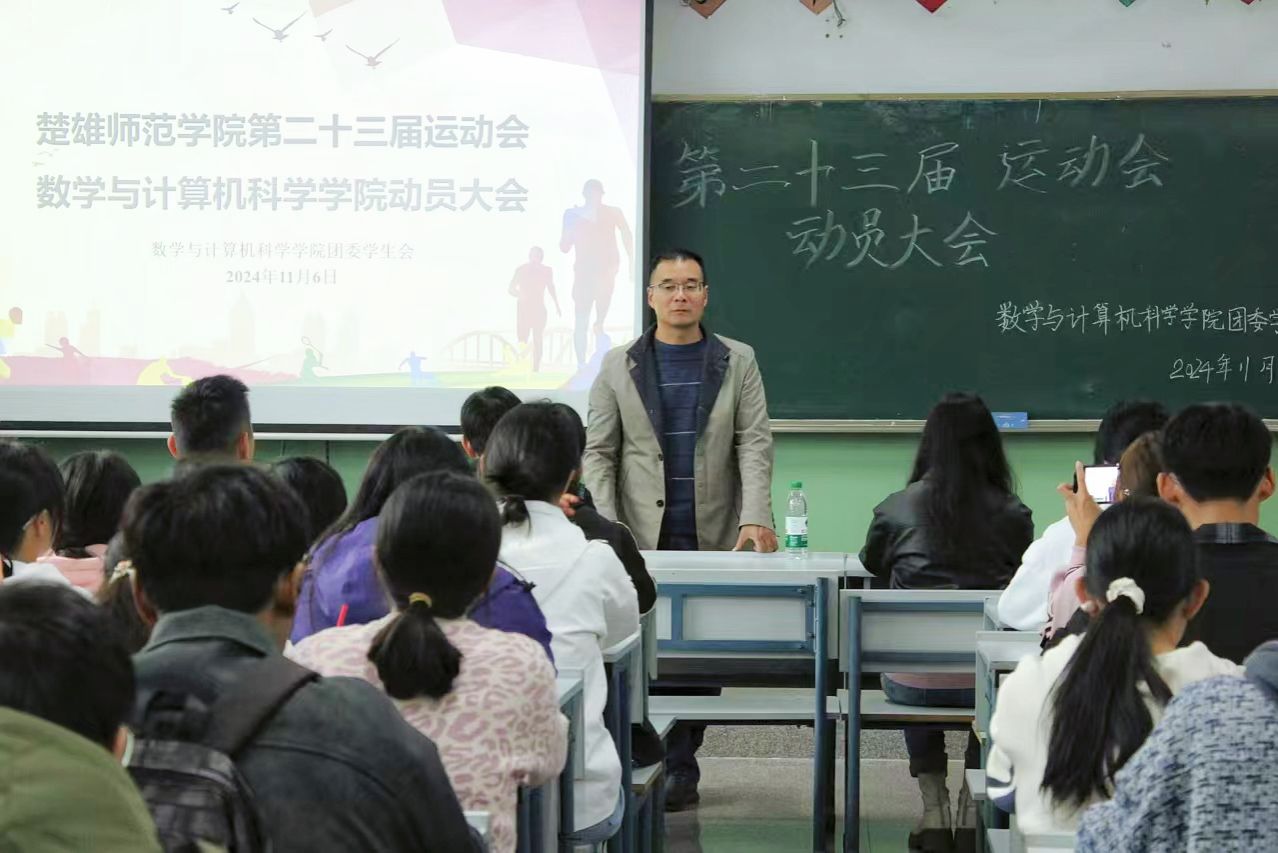 随后,杨段生进行了动员讲话,杨段生表示运动会是展现数计学子青春活力与团队精神的契机,全体运动员要积极备战,以最佳状态迎接运动会,要把握机会、积极参与、挑战自我,延续学院体育人才辈出的风貌。最后,杨段生祝愿运动员们在本次运动会中超越自我,创造辉煌,为学院增添荣光。