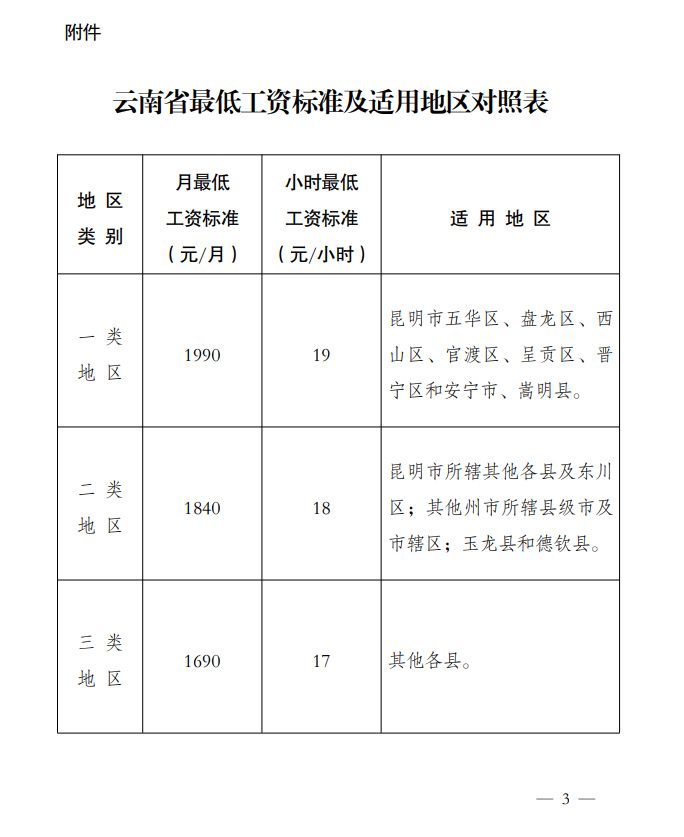 (三)三类地区月最低工资标准调整为1690元;小时最低工资标准调整为17元。