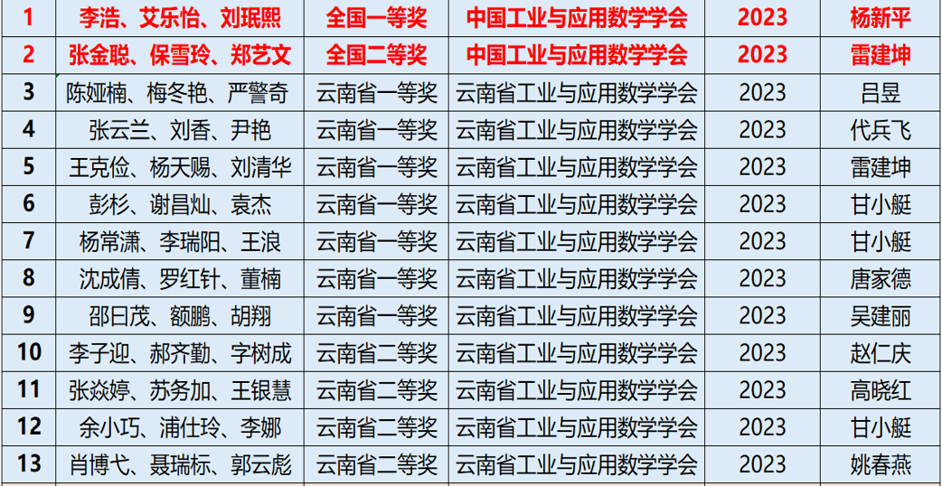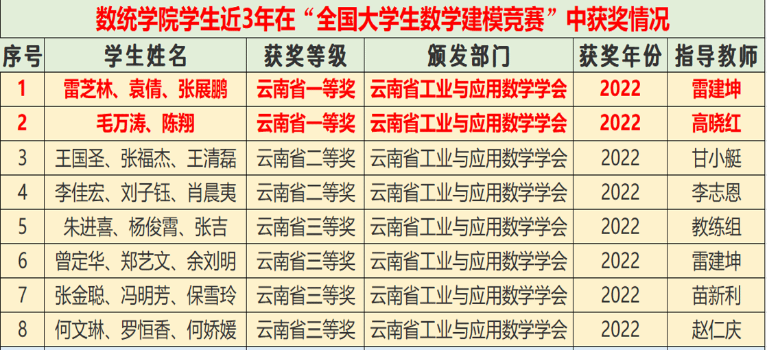 数学与统计学院2022-2023年学生参加大学生数学建模竞赛获奖情况